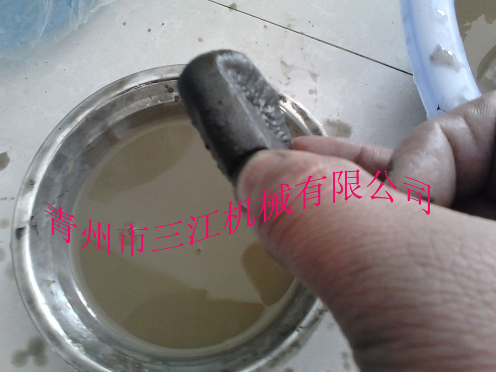 5.用普磁(磁力1000-1800gs)在礦漿中選取鐵粉,直到基本上無鐵粉吸附在磁鐵上為止。